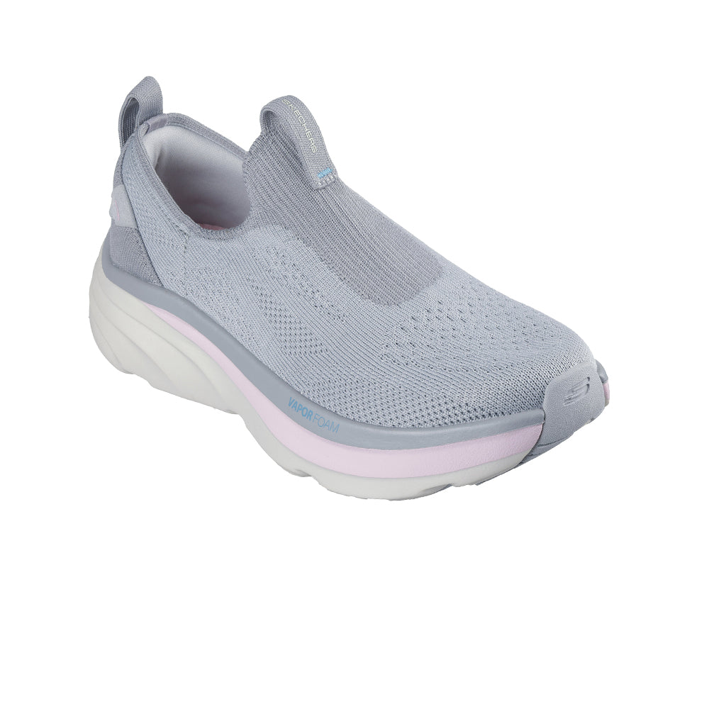 ก้าวเข้าสู่ความสบายที่เป็นธรรมชาติและมีสไตล์ด้วยรองเท้าลำลองผู้หญิง SKECHERS D'Lux Vapor - Pure Stride รองเท้าผ้าใบสวมคู่นี้มีอัปเปอร์ที่ทำจากผ้าถักยืดหยุ่นที่ออกแบบมาเป็นพิเศษพร้อมดีไซน์ Stretch Fit® ให้สัมผัสเหมือนถุงเท้า เพลิดเพลินไปกับความสบายตลอดทั้งวันด้วยพื้นรองเท้า Skechers Air-Cooled Memory Foam® และ Relaxed Fit® เพื่อความพอดีที่กว้างขวางบริเวณปลายเท้าและปลายเท้า