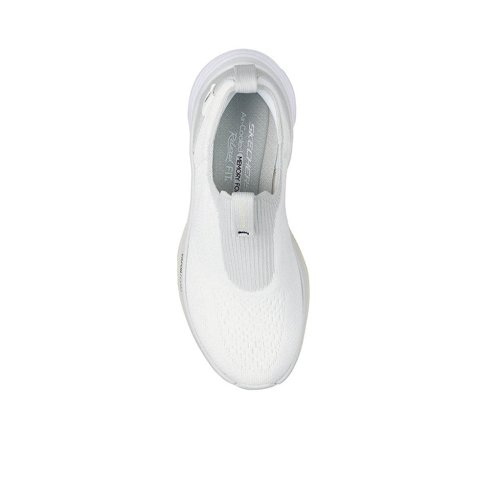 สัมผัสความเบาสบายสไตล์สปอร์ตด้วยรองเท้าลำลองผู้หญิง SKECHERS D'Lux Vapor - Pure Stride โดดเด่นด้วยอัปเปอร์ที่ทำจากผ้าถักยืดหยุ่นที่ออกแบบมาเป็นพิเศษ พร้อมพื้นรองเท้าชั้นใน Skechers Air-Cooled Memory Foam® และสามารถซักด้วยเครื่องซักผ้าได้
