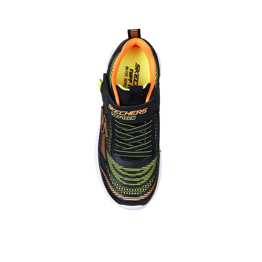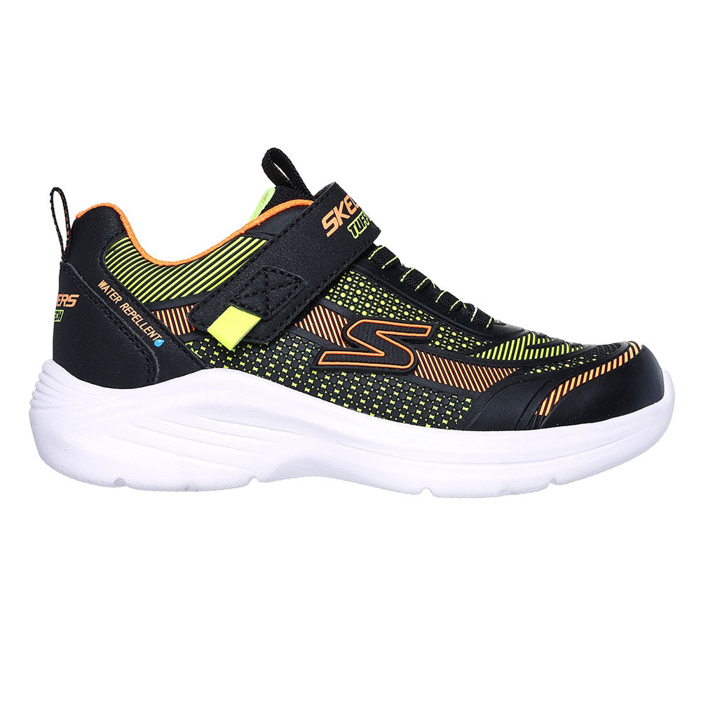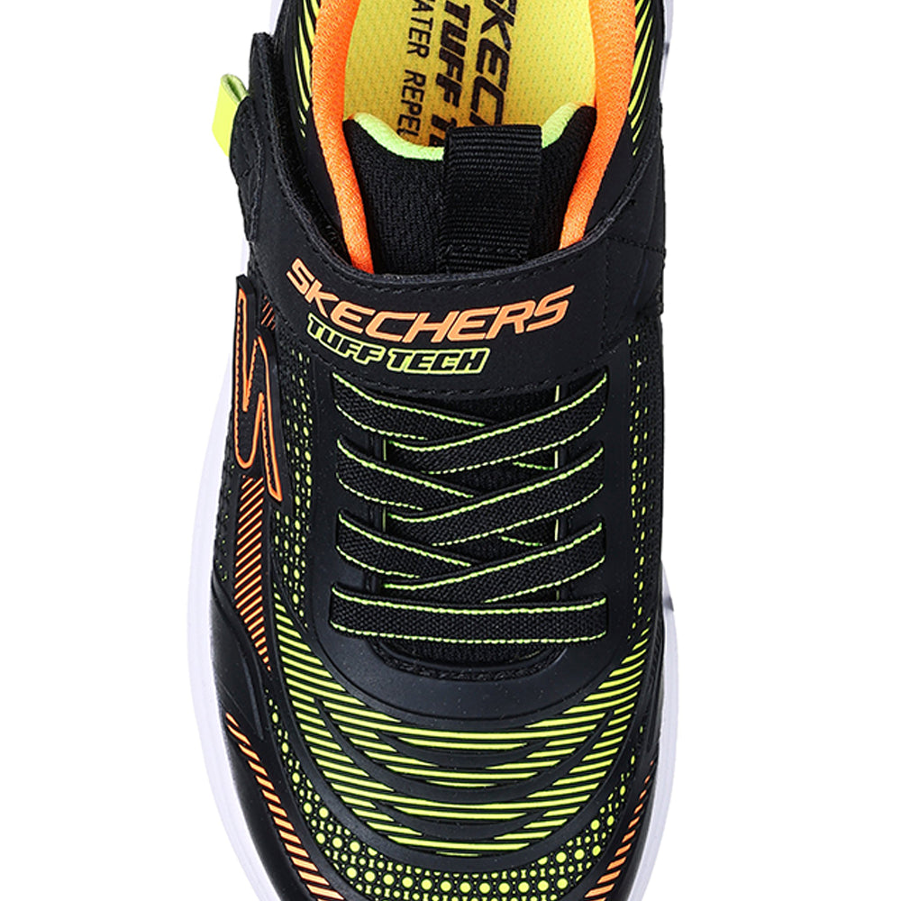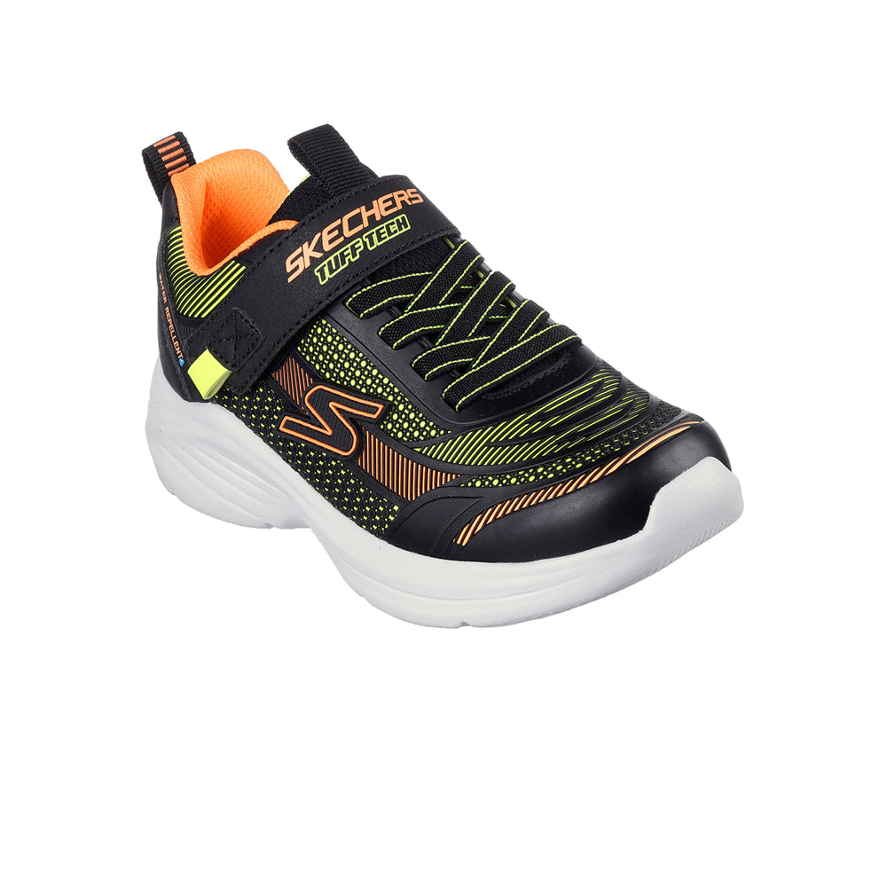 ก้าวออกไปด้วยความสบายน้ำหนักเบา และพร้อมสำหรับทุกสภาพอากาศด้วยรองเท้าลำลองเด็กผู้ชาย SKECHERS Hyper-Blitz - Hydro-Tronix โดดเด่นด้วยอัปเปอร์จากวัสดุสังเคราะห์ Tuff Tech เคลือบกันน้ำ พร้อมเชือกผูกรองเท้าแบบยืดและพื้นรองเท้าชั้นกลางดูดซับแรงกระแทก