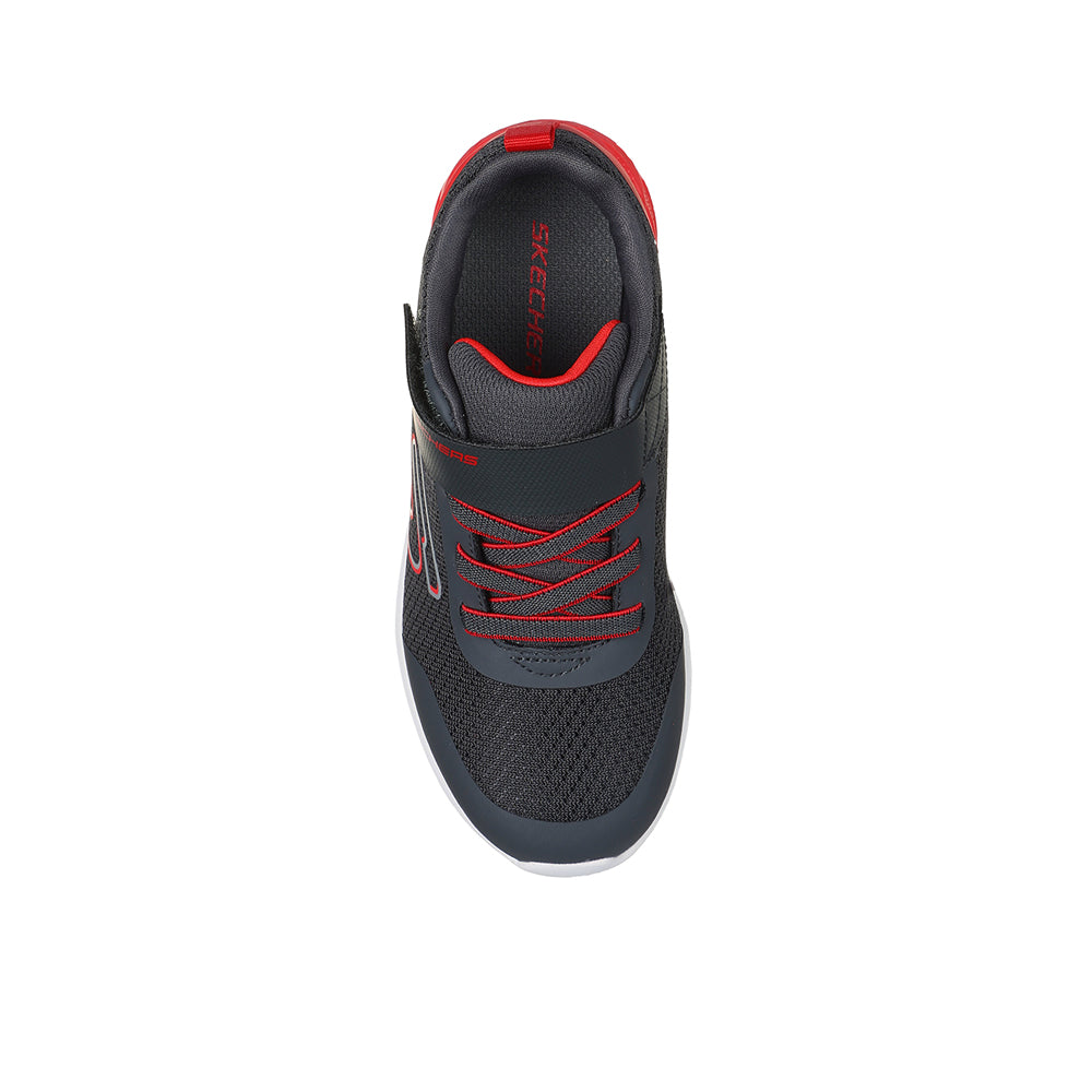 สวมใส่สบายได้ตลอดวันด้วยรองเท้าลำลองเด็กผู้ชาย SKECHERS Microspec Max II - Vodrox โดดเด่นด้วยอัปเปอร์ผ้าตาข่ายและวัสดุสังเคราะห์พร้อมเชือกรองเท้ายืดหยุ่น พร้อมด้วยพื้นรองเท้าชั้นกลางแบบ Skech-Air® ที่มองเห็นได้ และพื้นรองเท้าชั้นในที่นุ่มสบาย