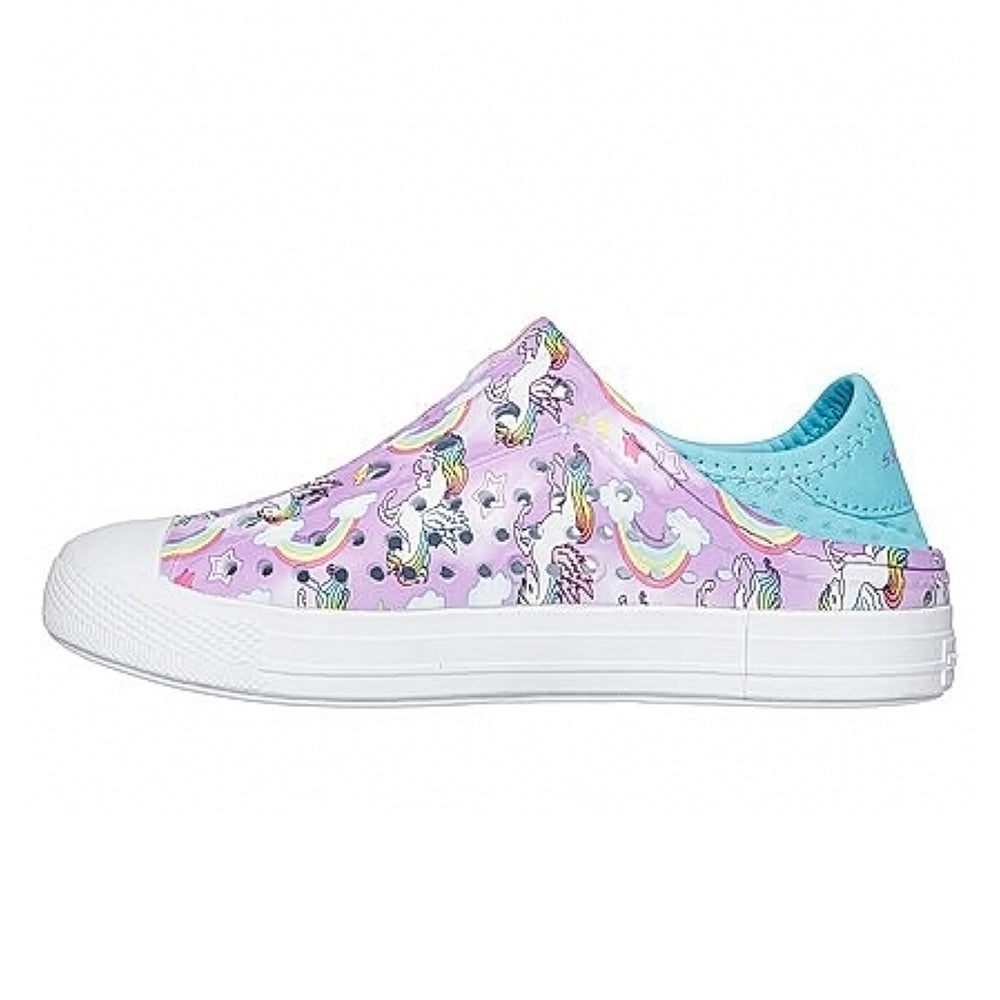 ก้าวสู่ความสนุกสนานและความสบายด้วยรองเท้าลำลองเด็กผู้หญิง SKECHERS Foamies®: Guzman Steps รองเท้าดีไซน์กันน้ำนี้มีอัปเปอร์ที่ทำจากโฟม EVA แบบเจาะรูพร้อมส้นรองเท้าที่ทำจากนีโอพรีนที่พับได้และพื้นรองเท้าที่นุ่มสบาย