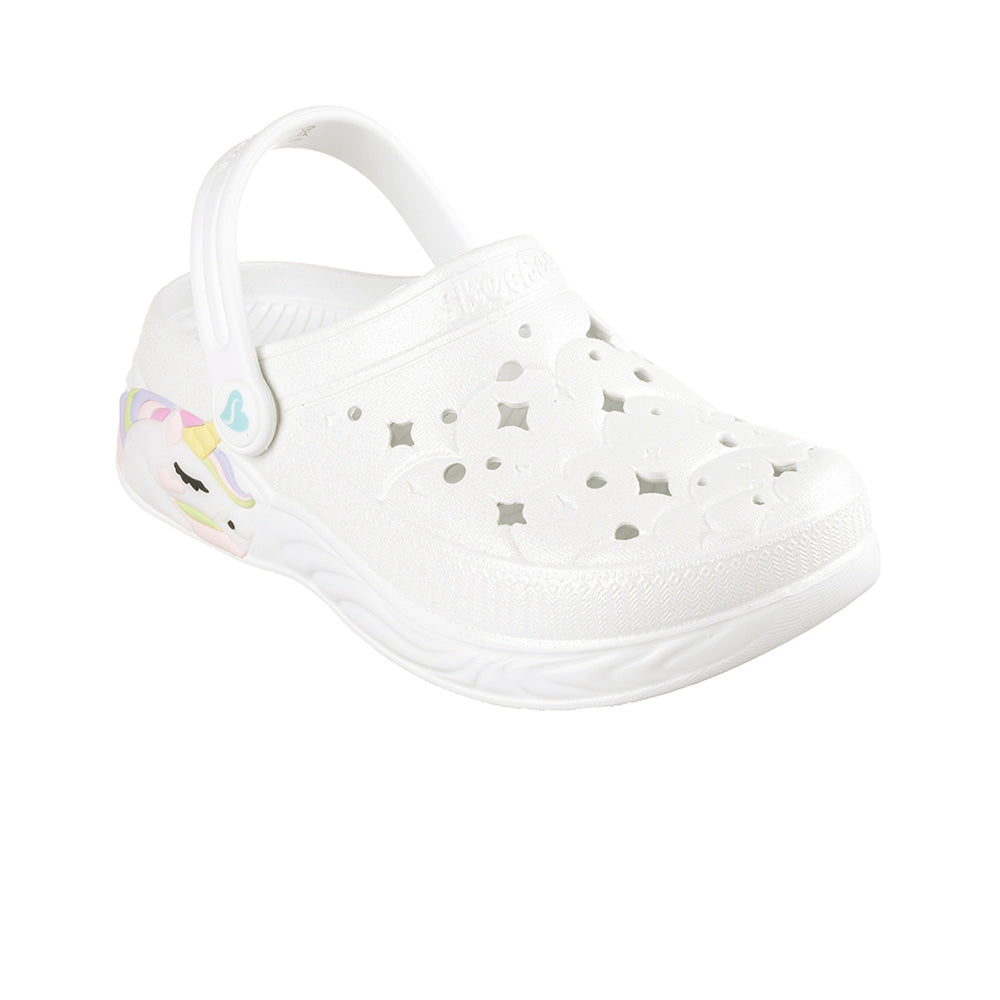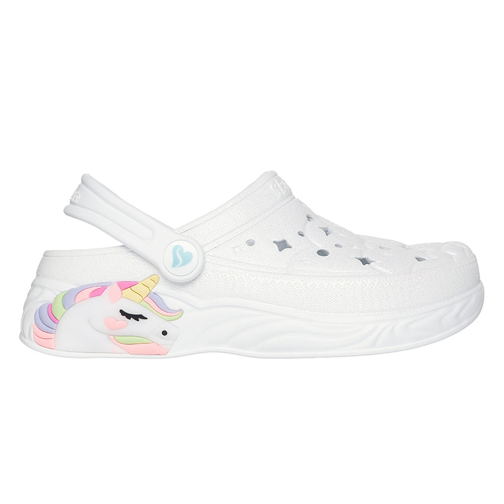 ก้าวเข้าสู่สไตล์ยูนิคอร์นสุดมหัศจรรย์ด้วยรองเท้าลำลองเด็กผู้หญิง SKECHERS Foamies®: Unicorn Dreamer รองเท้าแบบสวมที่มีอัปเปอร์เป็น EVA แบบมีเจาะรูที่ยืดหยุ่นได้พร้อมดีเทลพื้นรองเท้าชั้นกลางรูปยูนิคอร์นที่เรืองแสงและสายรัดส้นที่ปรับเปลี่ยนได้