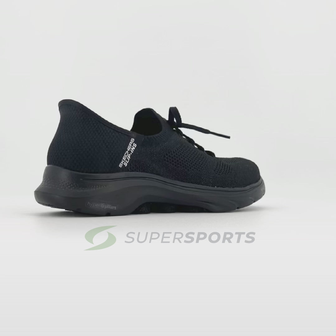 ก้าวเข้าสู่ความสบายในการเดินและการรองรับแรงกระแทกเมื่อสวมรองเท้าออกกำลังกายผู้หญิง SKECHERS Hands Free Slip-ins®: GO WALK 7™ - Via ออกแบบด้วย Heel Pillow™ สุดพิเศษของเรา โดดเด่นด้วยอัปเปอร์ถักที่ออกแบบเป็นพิเศษพร้อมเชือกผูกรองเท้า พื้นรองเท้าชั้นใน Skechers Air-Cooled Memory Foam® ระบบกันกระแทก ULTRA GO® น้ำหนักเบา และเทคโนโลยี Hyper Pillar Technology™ ที่ให้การเด้งกลับสูงเพื่อการรองรับเพิ่มเติม