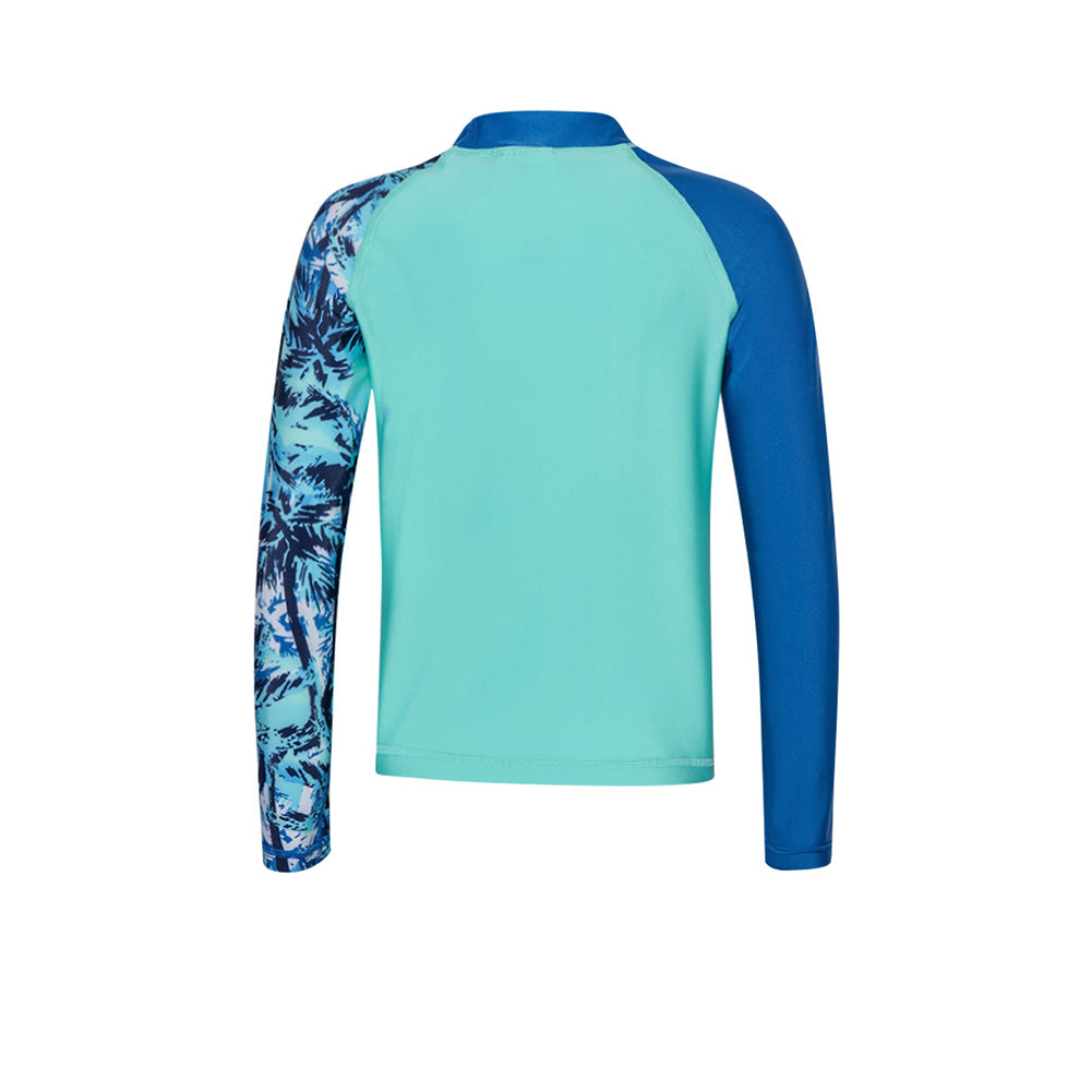 เล่นเซิร์ฟ สวนน้ำ หรือเล่นเกมบนชายหาด? เสื้อรัชการ์ดเด็กผู้ชาย SPEEDO Printed Long Sleeve ตัดเย็บด้วยดีไซน์สวมสบายพร้อมลายต้นปาล์มที่เด็กๆ ชื่นชอบ สนุกสนานได้นานขึ้นด้วยผ้า EnduraBrite ของเรา ซึ่งมีคุณสมบัติต้านคลอรีนได้ดีกว่าผ้าว่ายน้ำทั่วไป