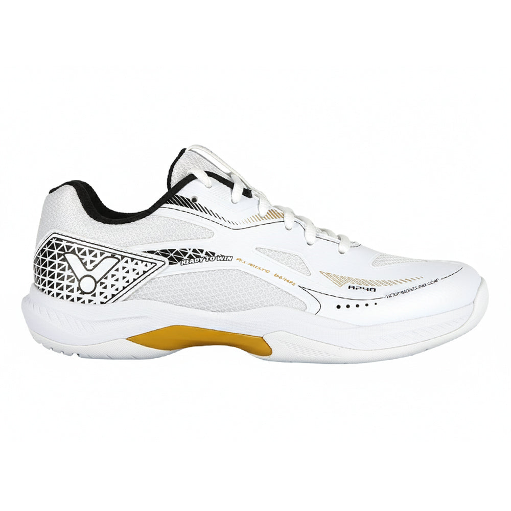 ก้าวสู่สนามอย่างมั่นใจและสบายด้วยรองเท้าแบดมินตันผู้ใหญ่ VICTOR A240 AX ออกแบบมาเพื่อความมั่นคงและการรองรับเท้า มาพร้อมระบบกันกระแทกที่ทนทานและพื้นรองเท้ายางไม่ทิ้งรอยเพื่อการยึดเกาะที่มั่นใจ